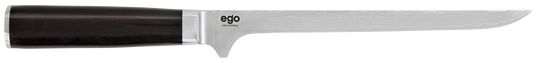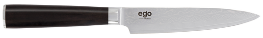 EGO-serien VG-10 er laget av japansk rustfritt stål, med ekstremt god kantfasthet og med sterk korresjonsmotstand. Den vil holde seg skarp i veldig lang tid. Godkjent av det Danske kokkelandslaget.
